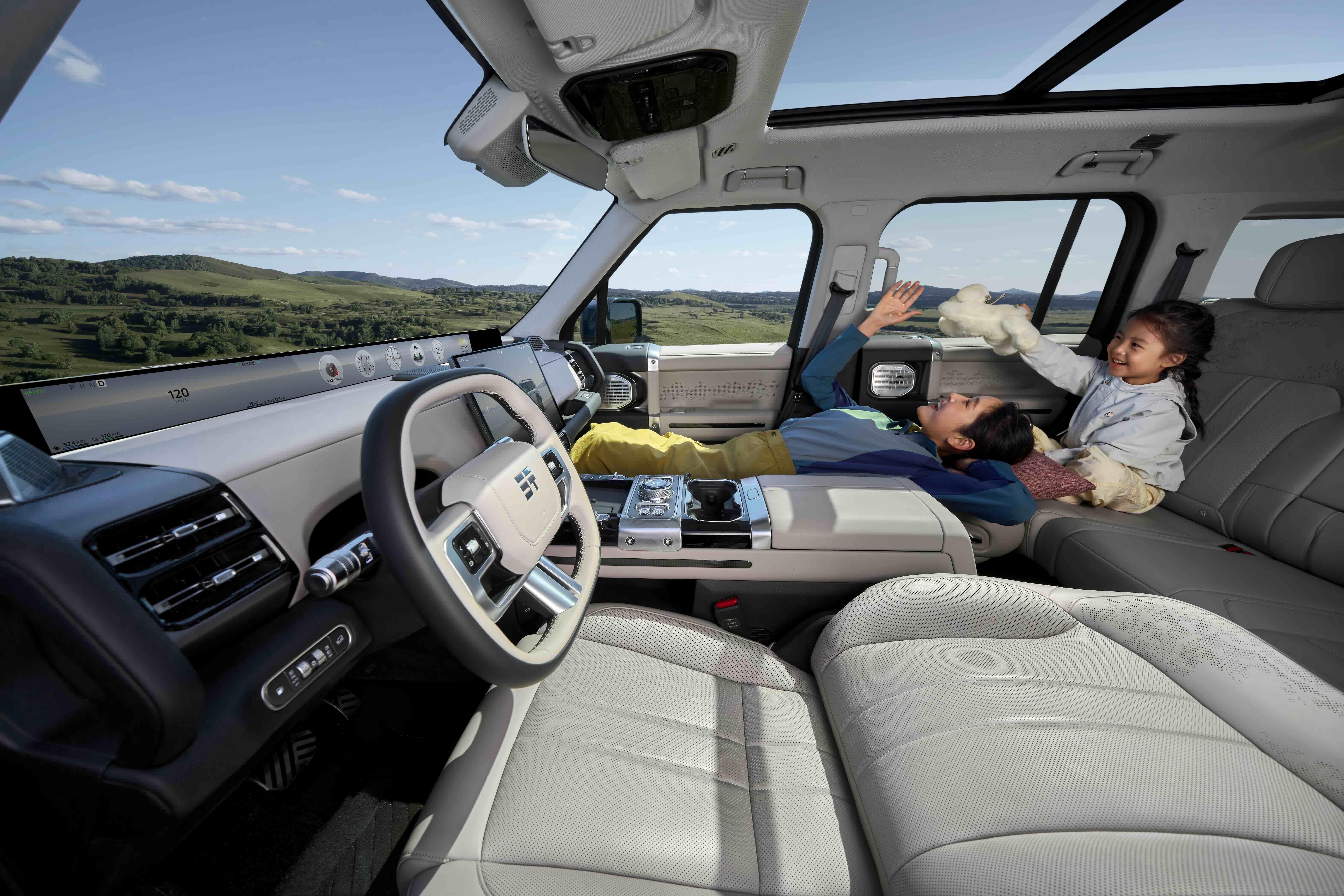 捷途纵横 G700 的座舱内使用了云感智能座椅:六座独立布局,一二排均配备通风、加热与八点按摩功能,副驾与二排右侧座椅还带有 190mm 长、85° 调节的无缝腿托。座椅面料选用 3-5 岁健康黄牛的头层 Nappa 真皮,同时座舱内还有 “纵横灵感四屏联动” 配置,这和大家日常对硬派越野车型的印象并不相同,但的确是现在消费者所喜欢的。