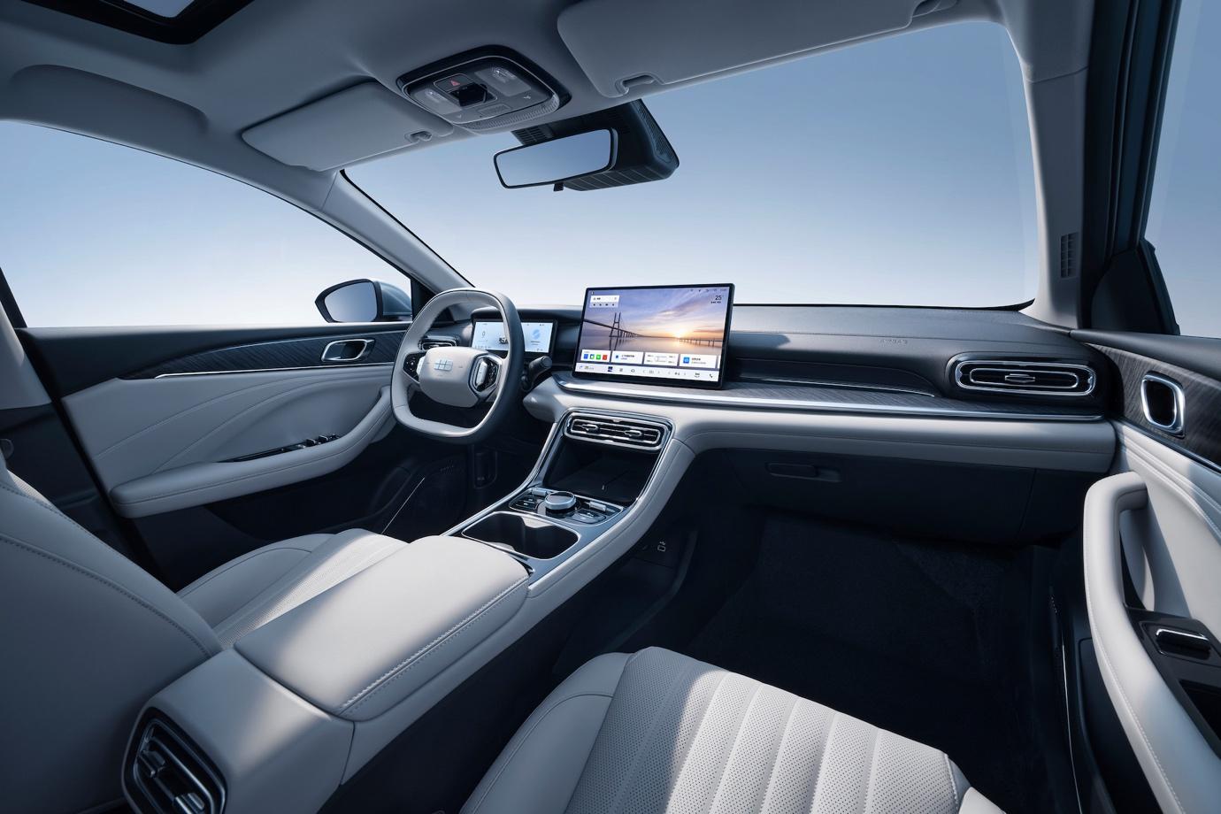 智驾层面,高配车型搭载的千里浩瀚H3系统,配备3个毫米波雷达、11颗高清摄像头、12个超声波雷达,算力达128 TOPS,支持CNOA城市领航与HNOA高速领航——城市道路可识别红绿灯读秒、自动绕行障碍,高速道路能自动超车、遇大车避让、自主驶离匝道。