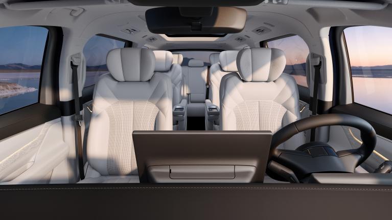 与此同时,吉利银河V900首创“3个1”全球最大空间布局——二排空间超1013mm、三排空间超1013mm、后备箱超1100L,极大程度地提升了空间延展性。200mm的二排中央通道和168mm的三排中央通道皆为同级最宽,总长达2720mm的贯穿通道,让全家人能畅享空间自由。后备箱可轻松容纳15个20寸行李箱,满载7人时容积仍达同级2倍,满足大家庭出行储物需求。
