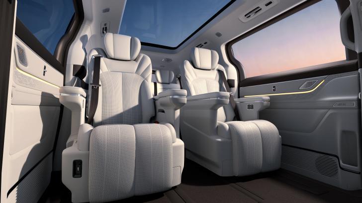 银河V900的舒适座舱媲美飞机头等舱。6座、8座版车型三排支持180°一键躺平,7座版三排靠背最大137°可调,搭配“云感SPA座椅”的11层结构设计与慢回弹记忆海绵,实现肩背腰臀全域贴合支撑。全车座椅配备通风、加热功能,主副驾及二排配备SPA级8点按摩功能,更有0压腿托与睡眠头枕加持,座座皆享越级舒适体验。