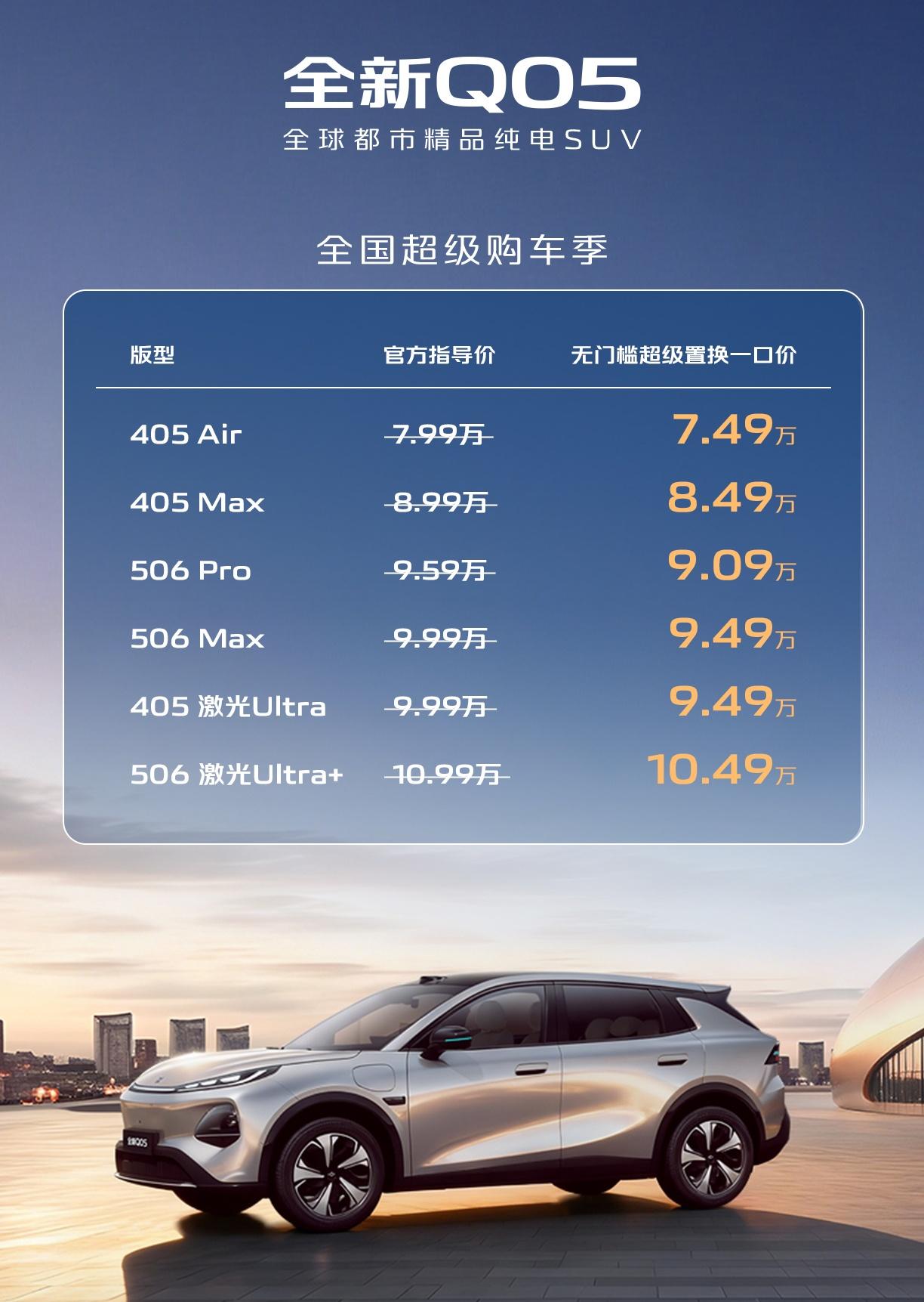 在10万级纯电SUV领域,高阶智能驾驶辅助配置长期处于空白状态,全新Q05的核心突破在于将激光雷达引入该价位段。