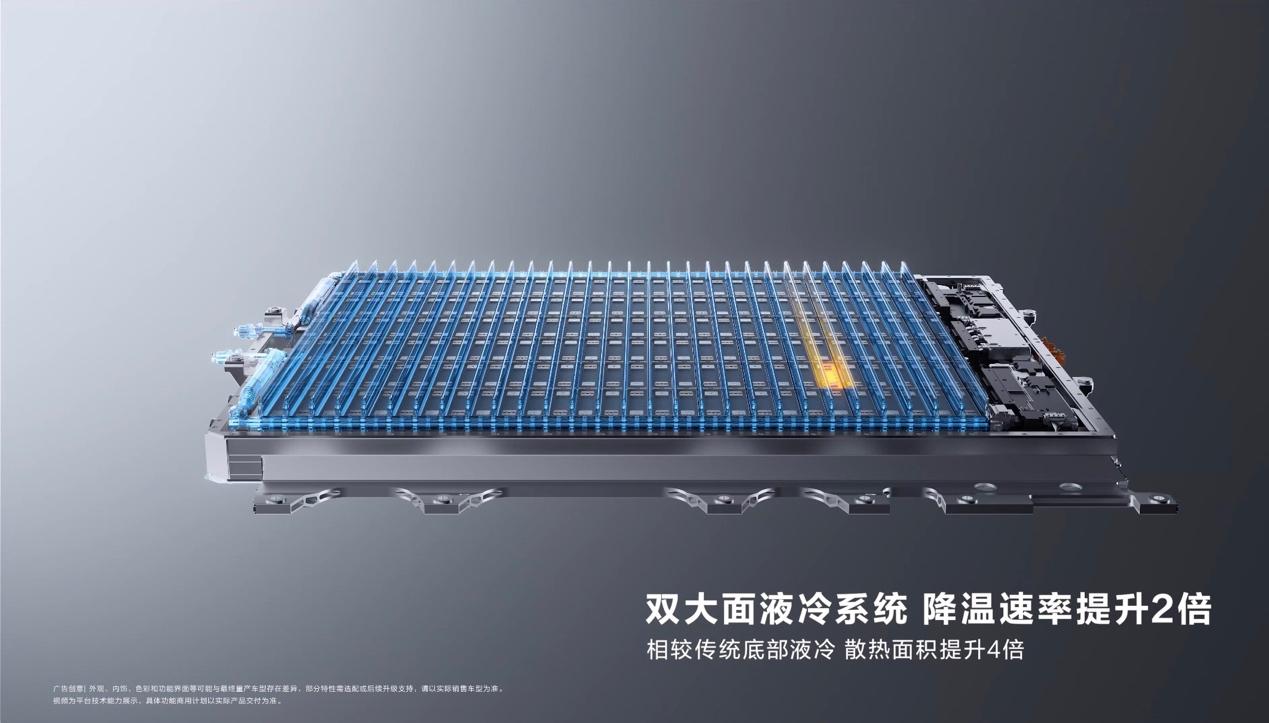 在『导』的层面,巨鲸电池平台搭载了全包裹大面液冷方案。
