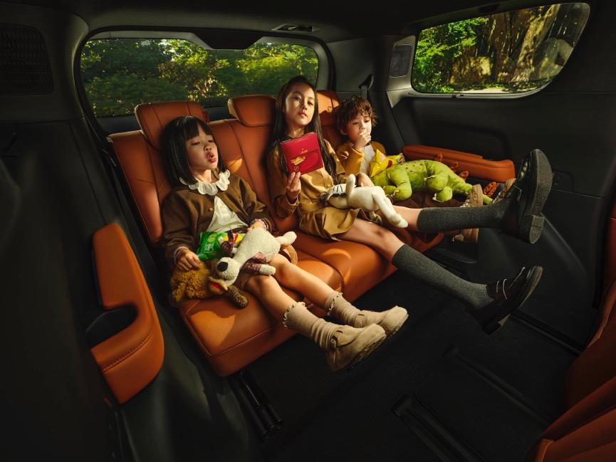 第三排座椅配备330mm超长行程电动滑轨,即便乘坐成年人也能获得宽适空间。全车座椅均采用母婴级亲肤材质,儿童可触及区域均做圆润弧度处理,细节处彰显家庭友好属性。