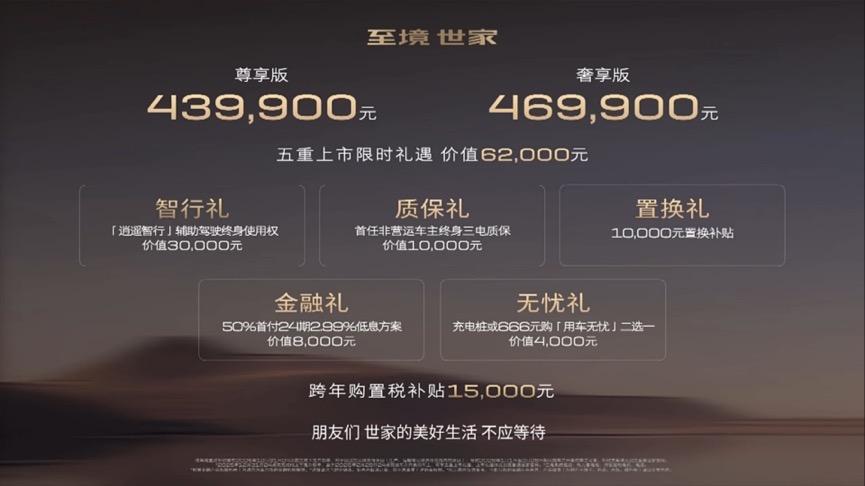 2025年12月5日,别克品牌正式推出高端新能源子品牌『至境』旗下旗舰MPV——至境世家,两款车型尊享版、奢享版官方指导价分别为43.99万元与46.99万元。