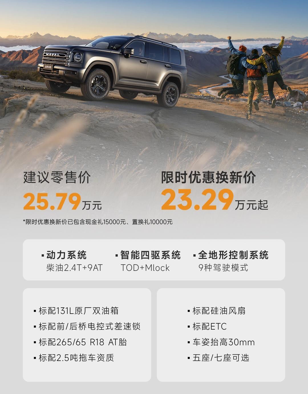 该车建议零售价为25.79万元,限时优惠换新价23.29万元起,限时优惠价已包含15000元现金礼与10000元置换礼,政策有效期为2025年12月11日至12月31日。相较于同配置的进口车型动辄超35万的价格,新车展现了明显的价格优势,让更多消费者能够触及长途穿越的梦想。