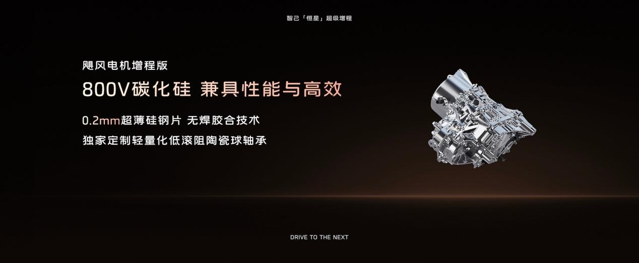 驱动电机作为纯电体验的直接载体,「恒星超级增程」搭载800V碳化硅飓风电机增程版,在材料、结构与性能上对标高性能电车,实现低损耗与动力输出的统一。