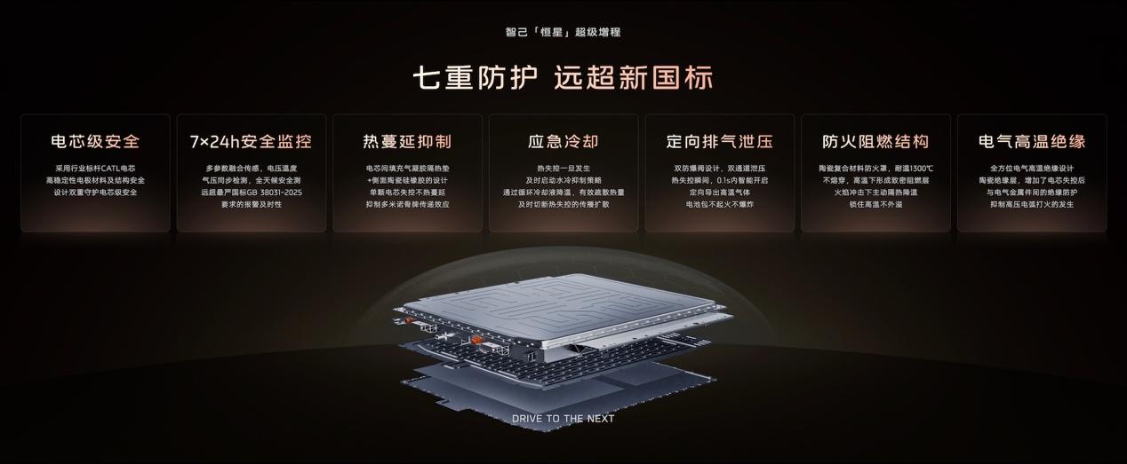 电芯间填充气凝胶隔热垫与侧面陶瓷硅橡胶,单颗电芯失控不发生热蔓延;双防爆阀设计可在0.1s内智能开启,定向导出高温气体,保障电池包安全。大电池容量设计降低了充电频次,新一代智己LS6月均充电仅4次,频率直降60%,仅为传统增程车型的1/3,有利于延长电池寿命。