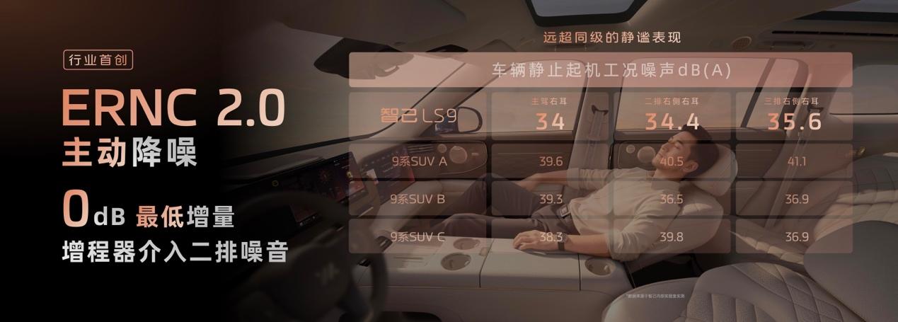 而旗舰LS9升级为ERNC 2.0技术,增程器介入时二排噪音增量低至0dB,配合1200+处整车广义声学包与1000+处车身声学密封处理,提升座舱静谧性。