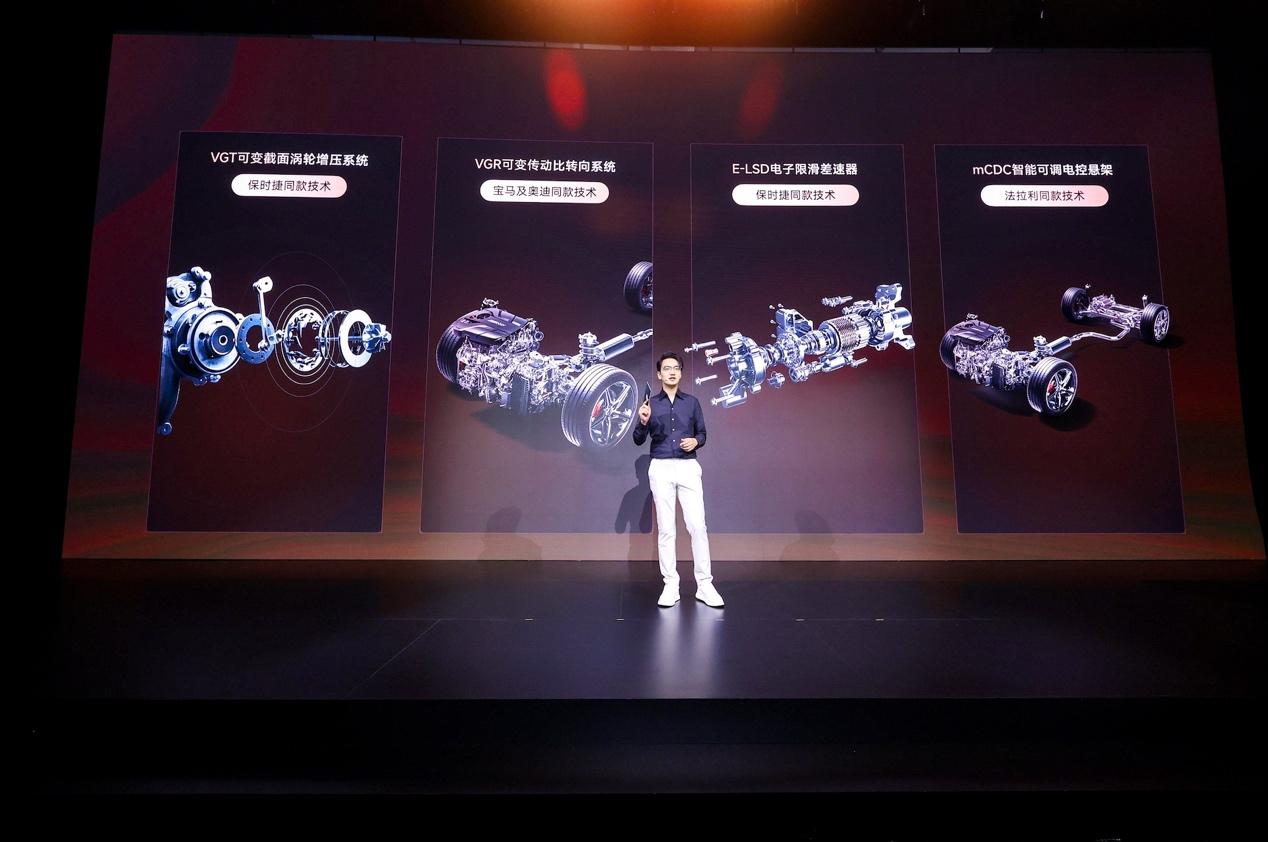 此外,E-LSD电子限滑差速器,通过多片式离合器进行轮间动力分配,有效抑制前驱车不足转向特性,提升弯道动态表现;同级唯一的mCDC智能可调电控悬架,阻尼响应速度达到20-50ms,可根据路况智能匹配阻尼系数,平衡操控性与舒适性。此外,VGR可变传动转向系统、VGT可变截面涡轮增压等技术也均为全系标配,让每一位用户都能享受到媲美豪华轿跑的驾控体验。