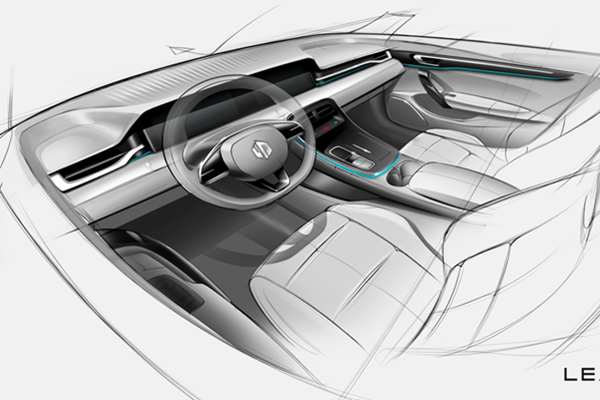 从预告图中可以看出,主驾驶位前方设计有三块液晶屏,左右两边的屏幕尺寸较大,方向盘正前方的屏幕尺寸较小。左右两边的屏幕分别显示车辆状态信息、地图、导航信息等等,而方向盘正前方的屏幕只显示车速和导航提示。方向盘两侧设计了两个圆形物理按键,左侧为驾驶模式选择按键,右侧为挡位控制按键。